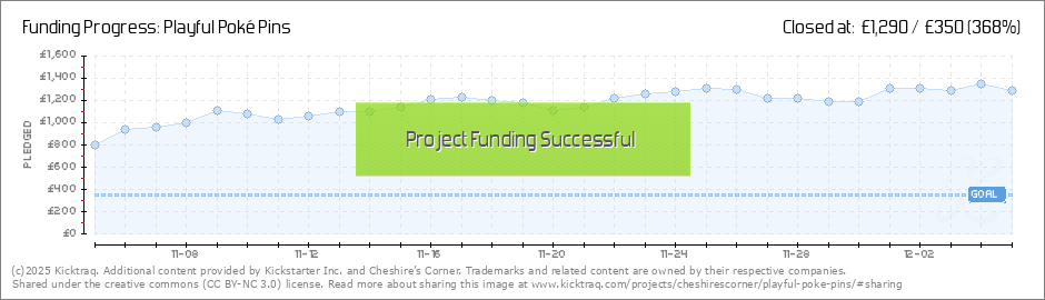 Thanks so much to everyone that's backed so far! We've just hit 1200 so Eevee, Vaporeon, Flareon and Jolteon are unlocked! ^^ Thanks again! (Read More)