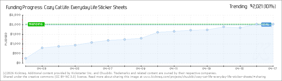 Help your backers reach your daily goals and help others see how you're doing. It's easy, with Kicktraq Mini.Here are a few quick snippits of code you can use to embed your personalized widget on your website, in your blog, and even on your favorite forum.