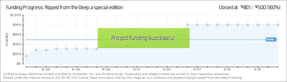 Thank you all so much for your support! We have made it halfway! Please share 'Ripped from the Deep' with anyone you know who might be interested, so they can help fund the project. Updates on the book: It's in the final stage of editing, and then I... (Read More)