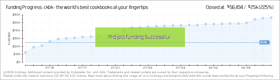 We cracked it! Wow! That was quite a few days... We blew past our $25,000 initial funding target on Friday, barely 3 days after we launched the ckbk project on Kickstarter! Not only that, but we were pinching ourselves later in the day to see ckbk... (Read More)