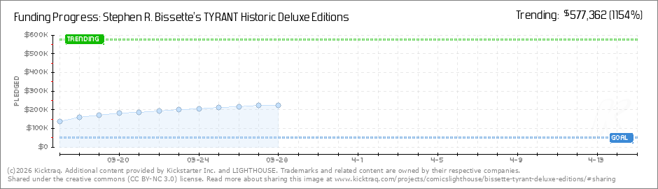 Folks, you've helped TYRANT roar past the $210,000 STRETCH GOAL and we are headed towards UNLOCKING the 3rd print in the FREE-TO-BACKERS set you all are assembling together through your support of the return of this historic work. The $220,000... (Read More)