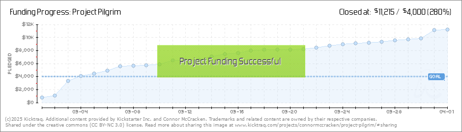 The Kickstarter has passed 200%!With 13 days left, Project Pilgrim continues to grow past $8000. Thank you to all of you who have contributed to the Kickstarter. The feedback I have received about this project has been incredible and I can't wait to... (Read More)