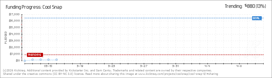 Help your backers reach your daily goals and help others see how you're doing. It's easy, with Kicktraq Mini.Here are a few quick snippits of code you can use to embed your personalized widget on your website, in your blog, and even on your favorite forum.
