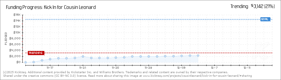 Help your backers reach your daily goals and help others see how you're doing. It's easy, with Kicktraq Mini.Here are a few quick snippits of code you can use to embed your personalized widget on your website, in your blog, and even on your favorite forum.