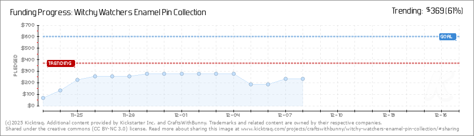 Help your backers reach your daily goals and help others see how you're doing. It's easy, with Kicktraq Mini.Here are a few quick snippits of code you can use to embed your personalized widget on your website, in your blog, and even on your favorite forum.