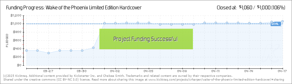 We did it!I'm so excited to announce that the campaign has enough backers now to fully fund on April 17. That's very exciting news, as it means current and future backers can now be confident they'll get the beautiful hardcover copy I'm working on... (Read More)