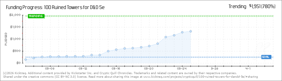 I'm blown away by the support we've gotten over the last few days. You pushed us past our first stretch goal, and I'm still processing it. That means 10 new ruined tower entries are being added to the supplement!Thank you. Seriously. This project... (Read More)