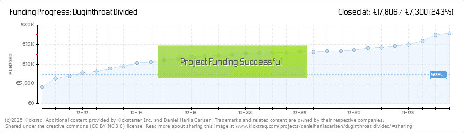 Greetings, early bird backers!As of right now, we've raised over €5,000 from over 150 backers all over the world, all helping to bring Duginthroat Divided to life. Thank you to everyone who followed our pre-launch page, backed the project, and... (Read More)
