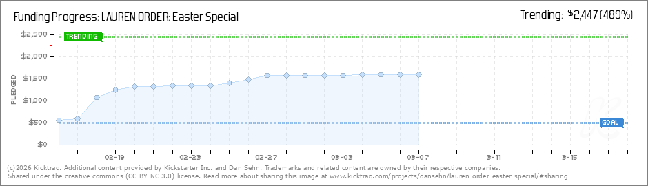 I’m taking the Easter duck left on my Jeep in February to be a sign that I’m on the right track with the LAUREN ORDER EASTER SPECIAL Kickstarter! Over 3/4 of the way to funding at Stretch Goal #1 so Thanks to all and we'll keep on pushing... (Read More)
