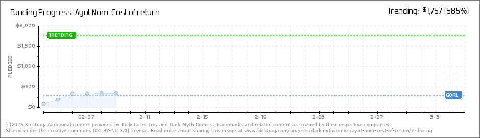 Help your backers reach your daily goals and help others see how you're doing. It's easy, with Kicktraq Mini.Here are a few quick snippits of code you can use to embed your personalized widget on your website, in your blog, and even on your favorite forum.