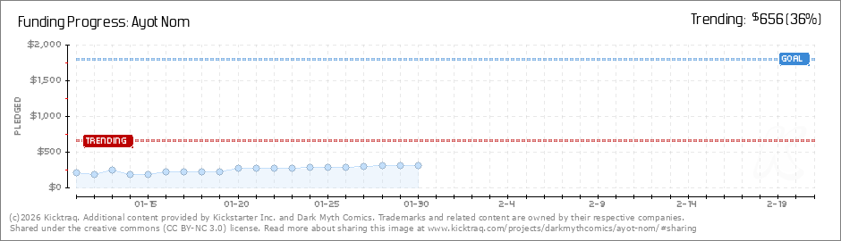 Help your backers reach your daily goals and help others see how you're doing. It's easy, with Kicktraq Mini.Here are a few quick snippits of code you can use to embed your personalized widget on your website, in your blog, and even on your favorite forum.