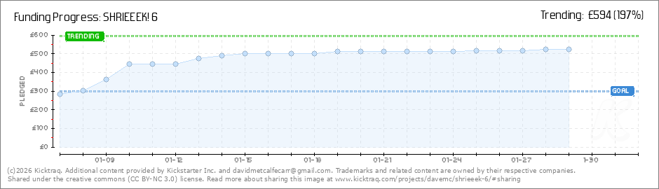 Help your backers reach your daily goals and help others see how you're doing. It's easy, with Kicktraq Mini.Here are a few quick snippits of code you can use to embed your personalized widget on your website, in your blog, and even on your favorite forum.