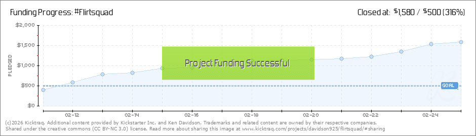 Help your backers reach your daily goals and help others see how you're doing. It's easy, with Kicktraq Mini.Here are a few quick snippits of code you can use to embed your personalized widget on your website, in your blog, and even on your favorite forum.