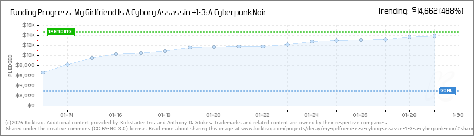 Help your backers reach your daily goals and help others see how you're doing. It's easy, with Kicktraq Mini.Here are a few quick snippits of code you can use to embed your personalized widget on your website, in your blog, and even on your favorite forum.