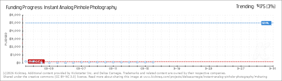 Thank you to all the new backers! Every bit of support helps get this project off the ground. If you have any questions about this Kickstarter, Pinsta cameras or pinhole photography, Please put them into the comments so I can answer them in a place... (Read More)