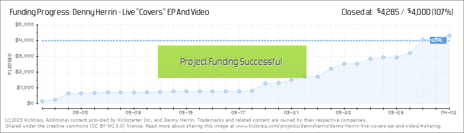 Howdy everyone!! Thank you all so much for getting us to our goal! We are in the process of mixing tracks as we speak and about to put a video together!! Really exciting stuff happening! Stay tuned! I will keep you updated through the entire... (Read More)