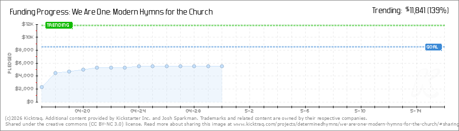 Help your backers reach your daily goals and help others see how you're doing. It's easy, with Kicktraq Mini.Here are a few quick snippits of code you can use to embed your personalized widget on your website, in your blog, and even on your favorite forum.