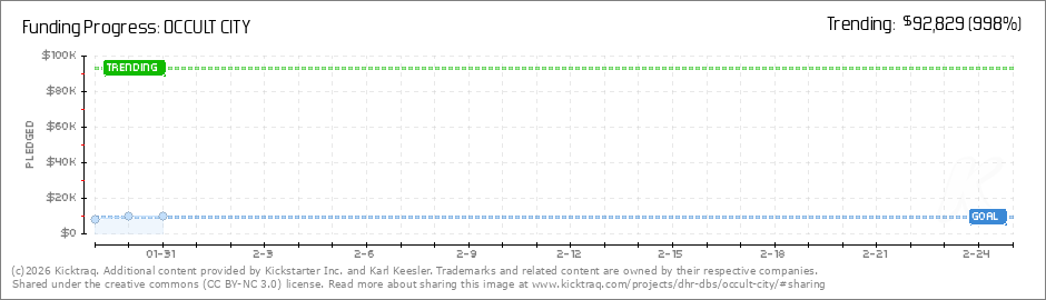 Thanks to 184 backers, as of this moment, OCCULT CITY is 100% Funded. We hope to keep rolling, unlocking some of our stretch goals in coming days. More about that soon. Thanks again for your support. You made it happen. (Read More)