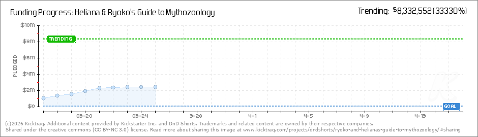 Help your backers reach your daily goals and help others see how you're doing. It's easy, with Kicktraq Mini.Here are a few quick snippits of code you can use to embed your personalized widget on your website, in your blog, and even on your favorite forum.