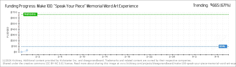 Help your backers reach your daily goals and help others see how you're doing. It's easy, with Kicktraq Mini.Here are a few quick snippits of code you can use to embed your personalized widget on your website, in your blog, and even on your favorite forum.