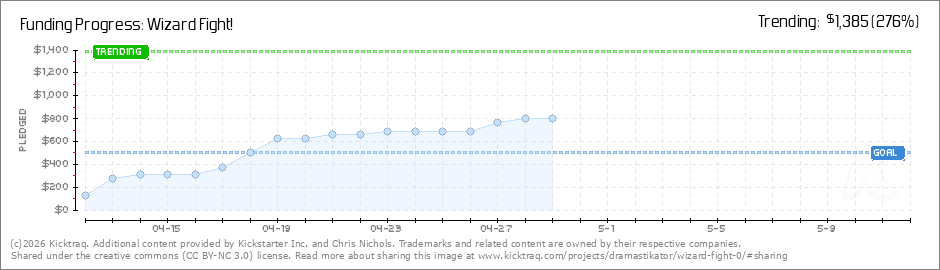 Help your backers reach your daily goals and help others see how you're doing. It's easy, with Kicktraq Mini.Here are a few quick snippits of code you can use to embed your personalized widget on your website, in your blog, and even on your favorite forum.
