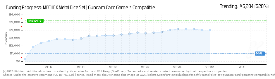Help your backers reach your daily goals and help others see how you're doing. It's easy, with Kicktraq Mini.Here are a few quick snippits of code you can use to embed your personalized widget on your website, in your blog, and even on your favorite forum.