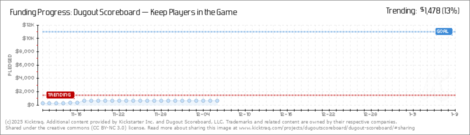 Help your backers reach your daily goals and help others see how you're doing. It's easy, with Kicktraq Mini.Here are a few quick snippits of code you can use to embed your personalized widget on your website, in your blog, and even on your favorite forum.