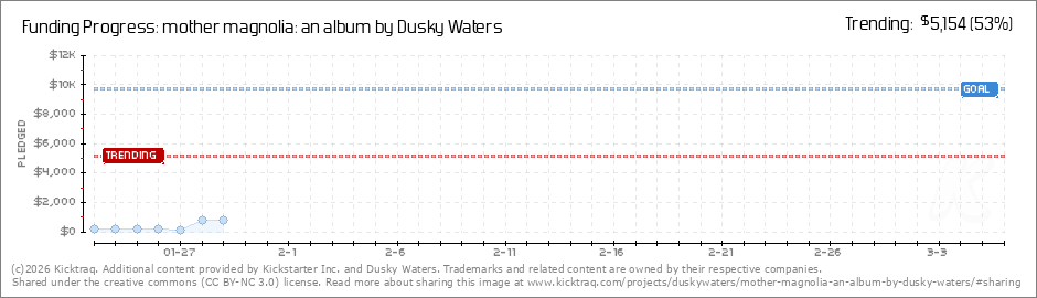 Help your backers reach your daily goals and help others see how you're doing. It's easy, with Kicktraq Mini.Here are a few quick snippits of code you can use to embed your personalized widget on your website, in your blog, and even on your favorite forum.