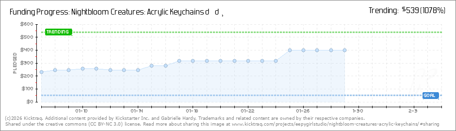 Help your backers reach your daily goals and help others see how you're doing. It's easy, with Kicktraq Mini.Here are a few quick snippits of code you can use to embed your personalized widget on your website, in your blog, and even on your favorite forum.