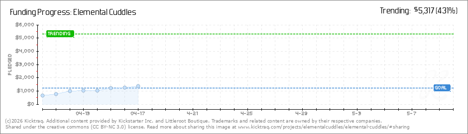 Help your backers reach your daily goals and help others see how you're doing. It's easy, with Kicktraq Mini.Here are a few quick snippits of code you can use to embed your personalized widget on your website, in your blog, and even on your favorite forum.