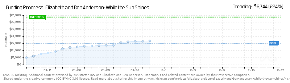 Help your backers reach your daily goals and help others see how you're doing. It's easy, with Kicktraq Mini.Here are a few quick snippits of code you can use to embed your personalized widget on your website, in your blog, and even on your favorite forum.