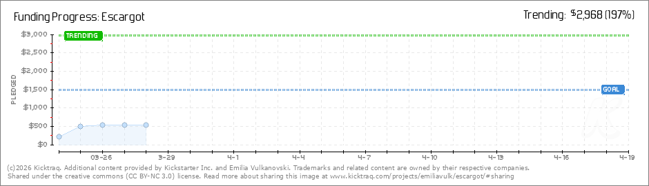 Help your backers reach your daily goals and help others see how you're doing. It's easy, with Kicktraq Mini.Here are a few quick snippits of code you can use to embed your personalized widget on your website, in your blog, and even on your favorite forum.