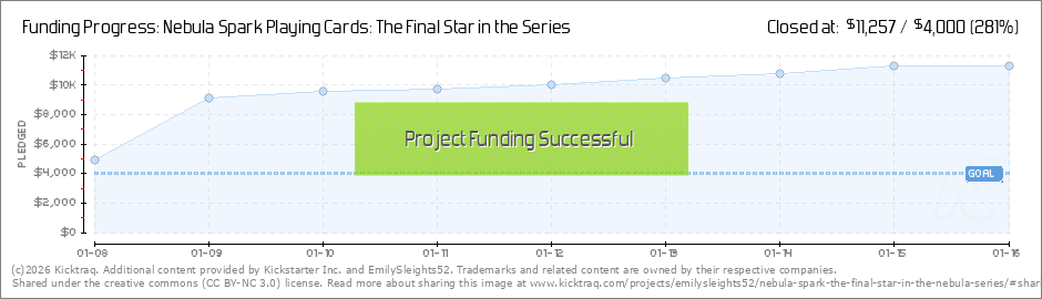 Friends....You did it!In just a few hours, you funded Nebula Spark Playing Cards! This is so exciting because this is the last and final deck of the beloved Nebula Series and I'm so beyond thankful that we get to make it a reality. I have VERY... (Read More)