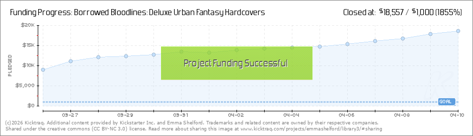 Hello, my amazing library backers, There are so many of you now! I am humbled and excited that you are all here. I'm doing the final readthrough of Borrowed Bloodlines, and it's well on track to being sent to the printers at the end of the campaign.... (Read More)