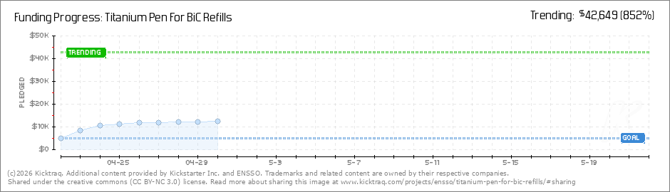 Help your backers reach your daily goals and help others see how you're doing. It's easy, with Kicktraq Mini.Here are a few quick snippits of code you can use to embed your personalized widget on your website, in your blog, and even on your favorite forum.