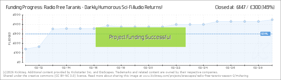 Hi everyone! Thank you so much for your support - the project is now funded. I can't easily put into words what it means to the team. Radio Free Taranis really was a dream when we came up with the idea. The number of different factors - this being... (Read More)