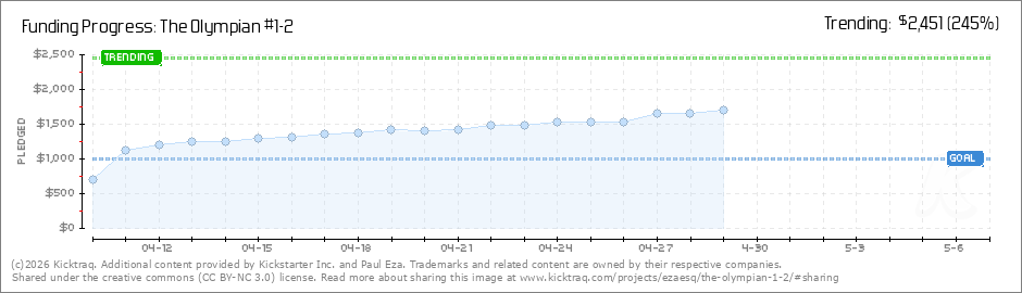 HOLY ZEUS! Thanks to all of our very generous backers, The Olympian Issue 2 is fully funded in just under 36 hours! That's a record for an Acorn Comics title, and we're just getting started! We have 26 days left, so keep your eyes peeled - we'll be... (Read More)