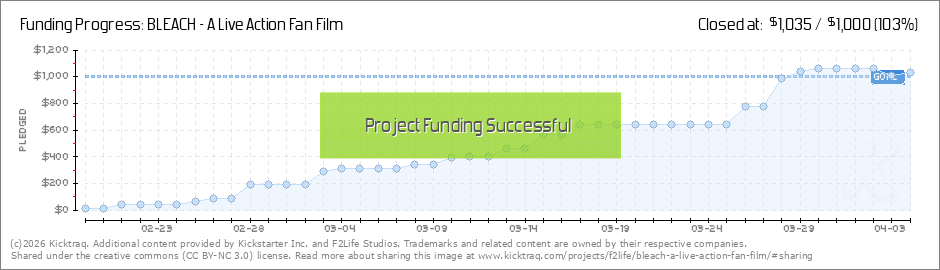 We are at the 24 hour mark. In less than 24hours the kickstarter for my Bleach Fan Film project will be ending. Just a reminder that we are wrapping things up and to make sure that your funds will be available for Kickstarter to process. I thank... (Read More)