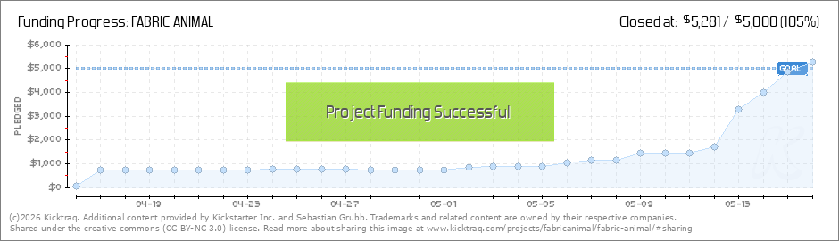 We're on our way to funding Fabric Animal. We're so grateful for those who jumped at the chance to make a contribution so far and can't wait to share the work with you! (Read More)