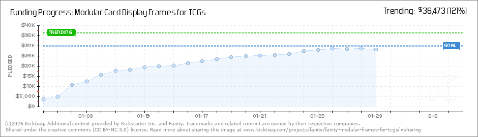 Help your backers reach your daily goals and help others see how you're doing. It's easy, with Kicktraq Mini.Here are a few quick snippits of code you can use to embed your personalized widget on your website, in your blog, and even on your favorite forum.