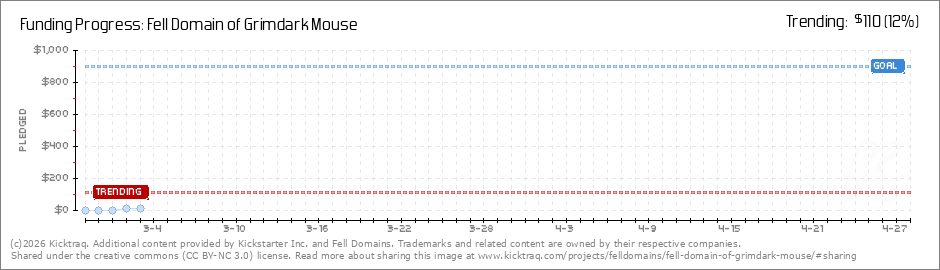 Help your backers reach your daily goals and help others see how you're doing. It's easy, with Kicktraq Mini.Here are a few quick snippits of code you can use to embed your personalized widget on your website, in your blog, and even on your favorite forum.