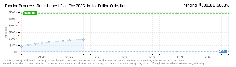 Hello backers! It has been just over a week since the project launched last Tuesday. I'm blown away by the response. I appreciate each and every one of you for making these dice possible! 🙂 Here's a quick inventory update: 22 of the items are now... (Read More)
