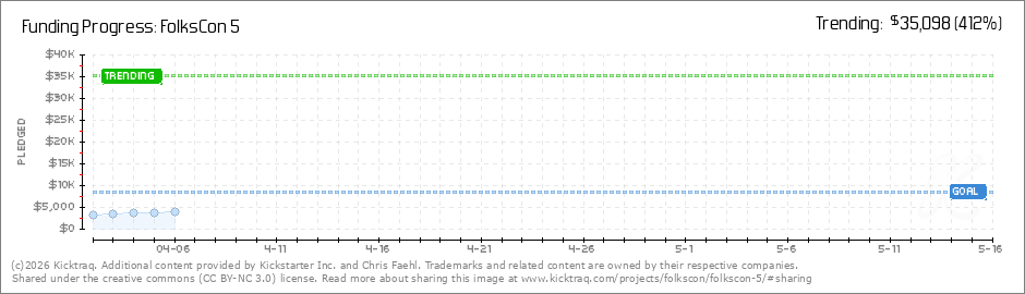 Help your backers reach your daily goals and help others see how you're doing. It's easy, with Kicktraq Mini.Here are a few quick snippits of code you can use to embed your personalized widget on your website, in your blog, and even on your favorite forum.