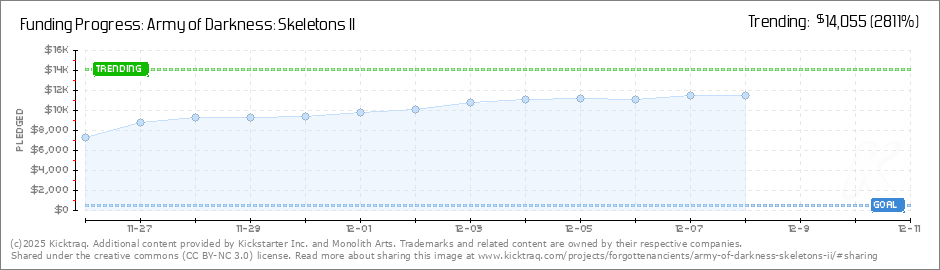 Help your backers reach your daily goals and help others see how you're doing. It's easy, with Kicktraq Mini.Here are a few quick snippits of code you can use to embed your personalized widget on your website, in your blog, and even on your favorite forum.