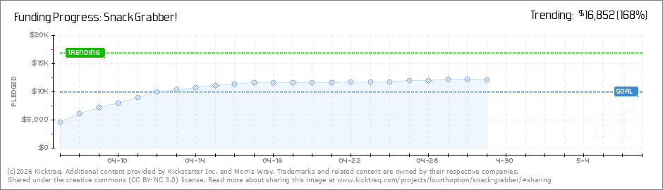 Help your backers reach your daily goals and help others see how you're doing. It's easy, with Kicktraq Mini.Here are a few quick snippits of code you can use to embed your personalized widget on your website, in your blog, and even on your favorite forum.