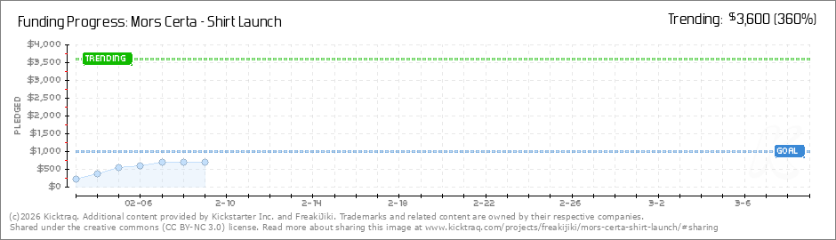 Help your backers reach your daily goals and help others see how you're doing. It's easy, with Kicktraq Mini.Here are a few quick snippits of code you can use to embed your personalized widget on your website, in your blog, and even on your favorite forum.
