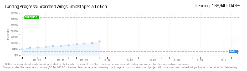 Hi y'all!!! Thank you for backing Scorched Wings. I am so excited to collab with you all to create a fantastic special edition for your shelves. If you're new to my books, my name is Frost Kay and I write romantic fantasy. I have been published for 9... (Read More)