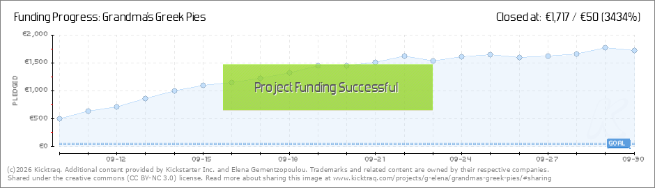 Dear friends and backers, I am beyond grateful and excited! In just a few hours after launch, Grandma’s Greek Pies has not only reached its funding goal, but was also selected by Kickstarter as a ⭐️ Project We Love ⭐️ — and thanks to your... (Read More)