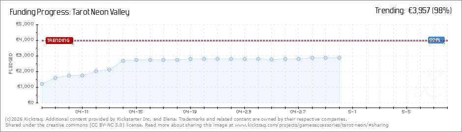 Help your backers reach your daily goals and help others see how you're doing. It's easy, with Kicktraq Mini.Here are a few quick snippits of code you can use to embed your personalized widget on your website, in your blog, and even on your favorite forum.