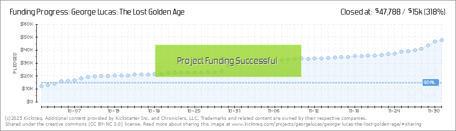 As we enter the third week of our campaign, we continue to be floored by the incredible support for George Lucas: The Lost Golden Age. We’ve now raised over $20,000 from more than 70 backers, and we can’t thank you enough for helping bring this... (Read More)